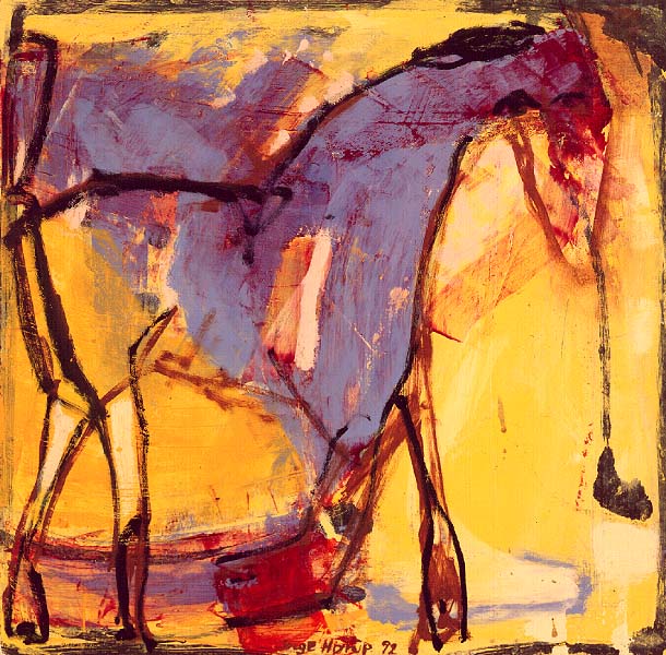 Fotograf: Jesper Holdgaard Værk titel: Billede med hest Værk type: Maleri Materiale: Olie på masonite Størrelse: 40x40 cm Færdiggjort: 1992