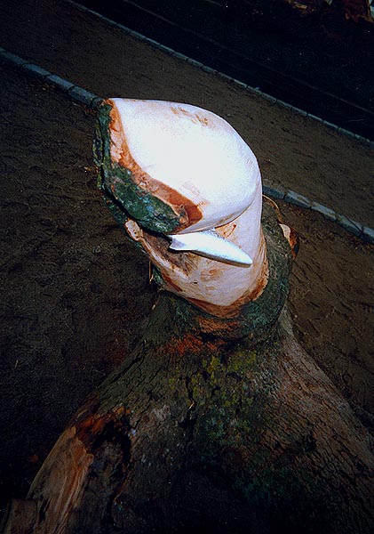 Fotograf: Eget foto Værk titel: Blæksprutte med sildehaj - detalje Værk type: Skulptur Materiale: Asketræ/bladsølv Færdiggjort: 1999