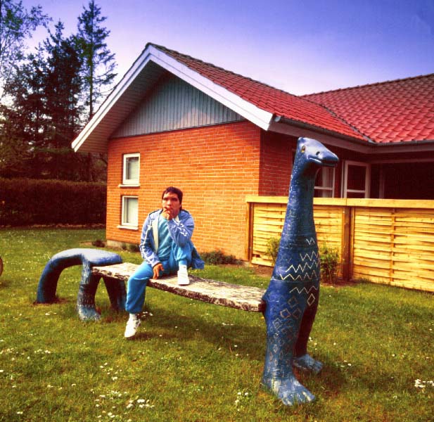 Fotograf: Agnete Zielinski Værk titel: Dinusauerbænken Værk type: Skulptur - udsmykning Materiale: Højbrændt stentøj Størrelse: 190x40x300 cm. Færdiggjort: 1990 Placering: Handicapcenter