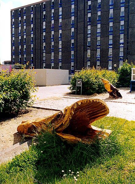 Fotograf: Eget foto Værk titel: Farligt gab Værk type: Skulptur Materiale: Asketræ Størrelse: 70x70x400 cm Færdiggjort: 1999