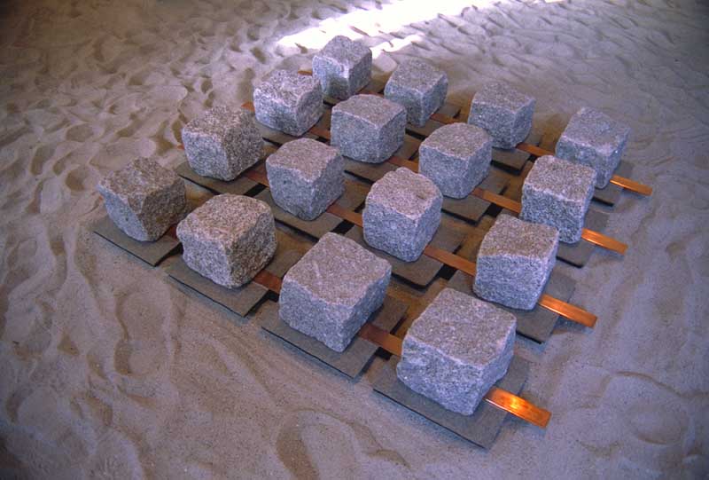 Fotograf: Lars Pryds Værk titel: Fra mørket Værk type: Skulptur Materiale: Træ, filt, kobber og granit Størrelse: 130 x 125 x 25 cm Færdiggjort: 1993