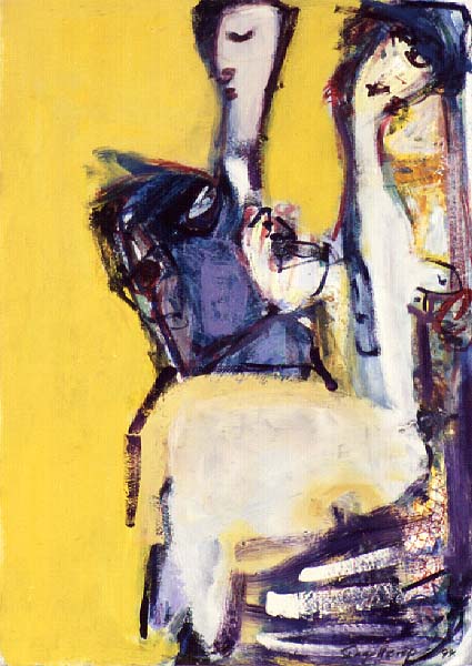 Fotograf: Eget foto Værk titel: Fristeren Værk type: Maleri Materiale: Papir opklæbet på masonite - mix/media Størrelse: 64x46 cm Færdiggjort: 1994
