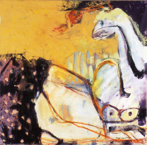 Fotograf: Eget foto Værk titel: Gule rosiner Værk type: Maleri Materiale: Olie på lærred Størrelse: 100x100 cm Færdiggjort: 1994