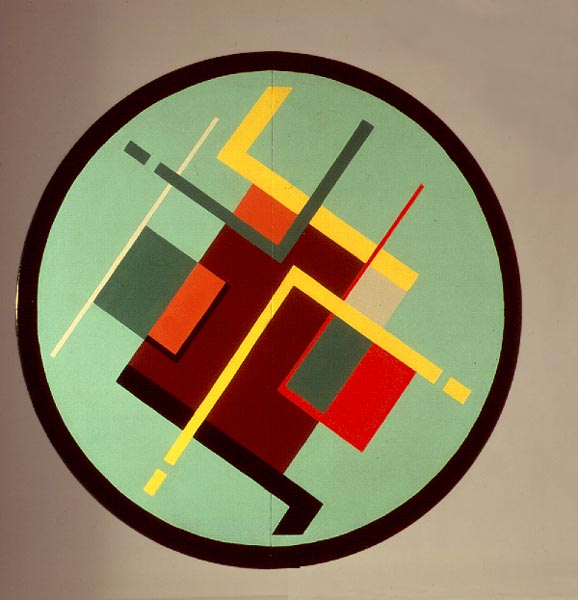 Fotograf: F.H. Foto, København Værk titel: Konkret billede Værk type: Maleri Materiale: Olie på træ Størrelse: Diameter 120 cm. Færdiggjort: 1990