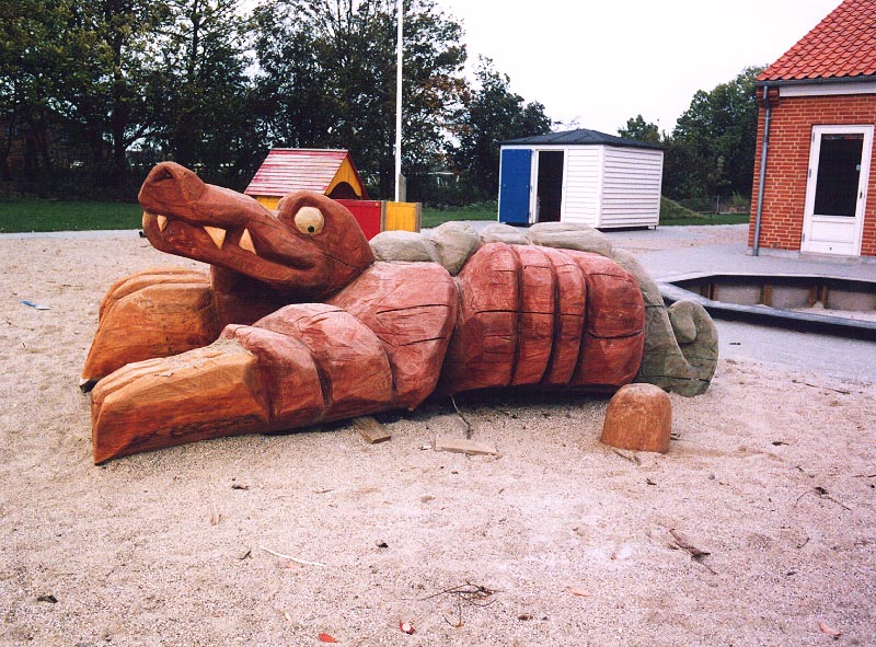 Fotograf: Niels Rahbæk Værk titel: Krokoøgle Værk type: Skulptur Materiale: Elmetræ, transparente oliefarver Størrelse: 150x150x600 cm Færdiggjort: 1993 Placering: Institution, Holme
