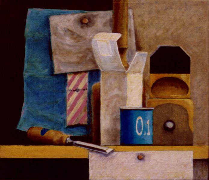 Fotograf: Eget foto Værk titel: Opstilling med værktøj Værk type: Maleri Materiale: Olie på lærred Størrelse: 40x45 cm. Færdiggjort: 1987