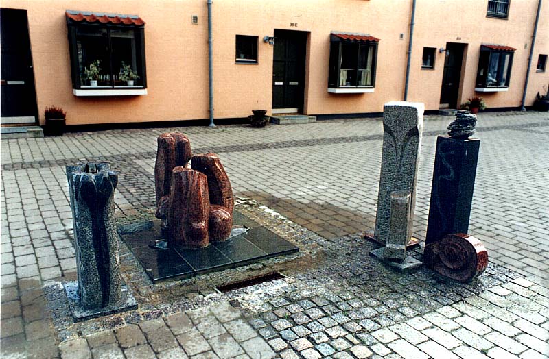 Fotograf: John Malling Rasmussen Værk titel: Over "Den lille Idas blomster" Værk type: Skulptur-vandkunst Materiale: 3 farver granit Færdiggjort: 1994 Placering: Fruegade