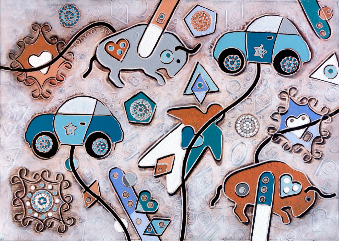 Pamplona, 2020, cm 50 x 70, oil and oxides on bas-relief in plaster on canvas
