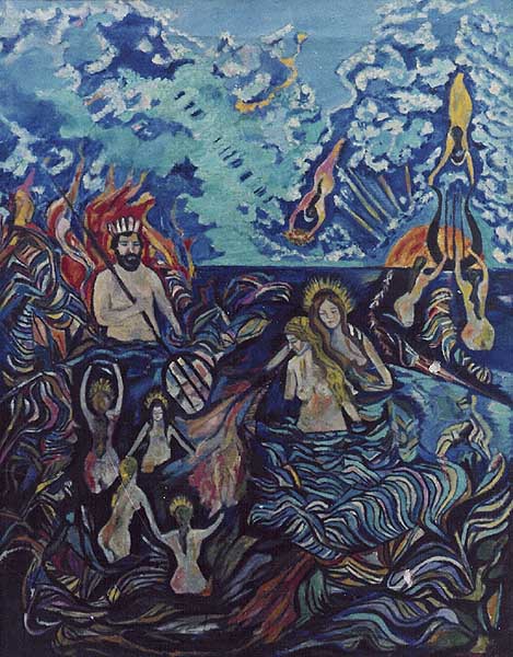 Fotograf: Steen Lystrup Værk titel: Poseidon ved den olympiske fest for Afrodites dåb Værk type: Maleri Materiale: Olie på lærred Størrelse: 175 x 150 cm Færdiggjort: 1967