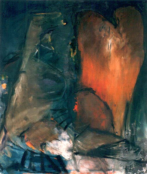 Fotograf: Eget foto Værk titel: Rauker I Værk type: Maleri Materiale: Olie på lærred Størrelse: 130x120 cm Færdiggjort: 1994 Placering: Den Danske Bank