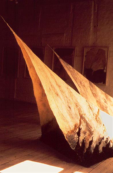 Fotograf: Eget foto Værk titel: Skjul Værk type: Skulptur Materiale: Filt (uld, hør, silke) Størrelse: 150 x 300 cm Færdiggjort: 1988