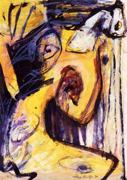Fotograf: Eget foto Værk titel: Skovbundsstudie Værk type: Maleri Materiale: Papir opklæbet på masonite - mix/media Størrelse: 64x46 cm Færdiggjort: 1994