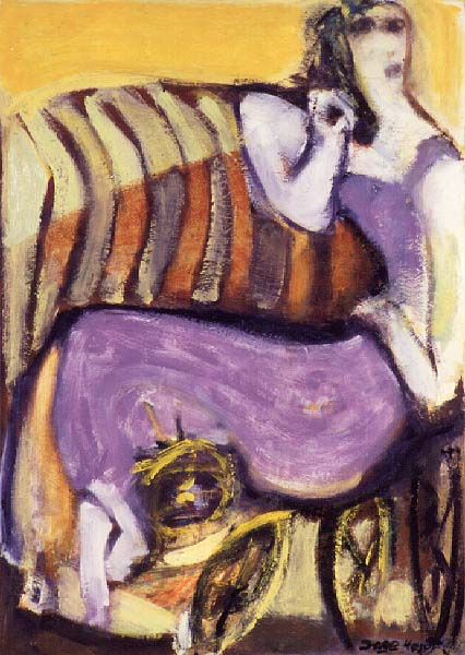 Fotograf: Eget foto Værk titel: Sofacyklen Værk type: Maleri Materiale: Papir opklæbet på masonite - mix/media Størrelse: 64x46 cm Færdiggjort: 1994