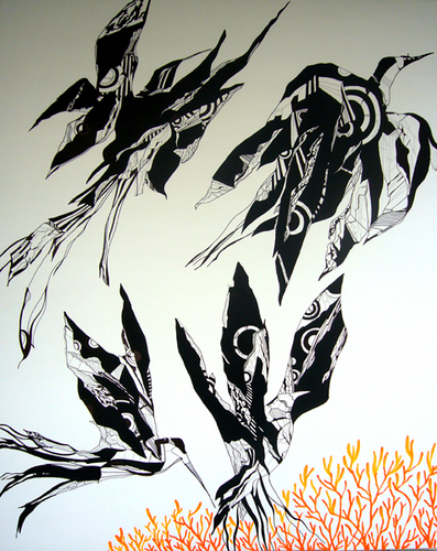 Tusch og akryl på lærred