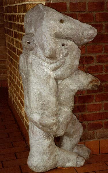 Fotograf: Eget foto Værk titel: Uden titel Værk type: Skulptur på et hjørne Materiale: Fiberbeton Størrelse: Ca. 100x60x30 cm Færdiggjort: 1991 Placering: Engdalsskolen, Brabrand