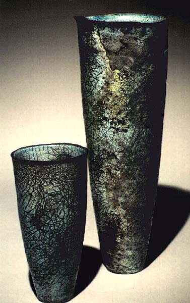 Fotograf: Johan Mikkelsen Værk titel: Uden titel Værk type: Vaser Materiale: Rakubrændt keramik Størrelse: 21x10 og 50x18 cm. Færdiggjort: 1992